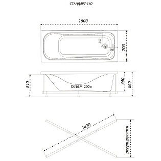 Ванна акриловая 160х70 см белая Triton "Стандарт Экстра" Н0000099329