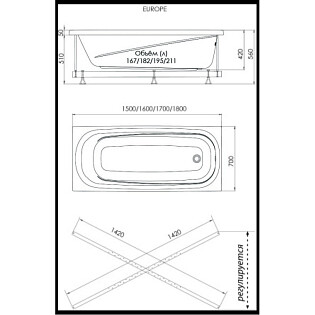 Ванна акриловая 170х70 см белая 1ACReal "Европа" Щ0000040925
