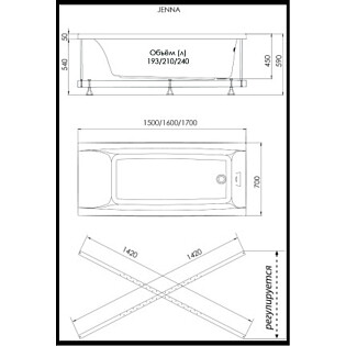 Ванна акриловая 150х70 см белая 1ACReal "Джена" Щ0000001221