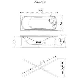 Ванна акриловая 165х70 см белая Triton "Стандарт Экстра" Щ0000017402