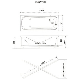 Ванна акриловая 150х70 см белая Triton "Стандарт Экстра" Н0000099328