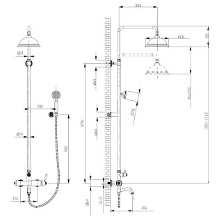 Душевой комплект с верхним душем и лейкой хром Wasserkraft A113.067.101.CH Thermo