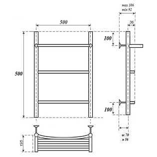 Полотенцесушитель водяной с полкой 50х50 см хром Point "Афина" PN04155P П2