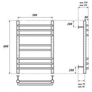 Полотенцесушитель водяной 50х80 см с полкой хром Point "Аврора" PN10158P П6