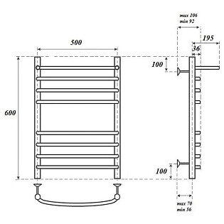 Полотенцесушитель водяной 50х60 см бронза Point "Афина П4" PN04156BR