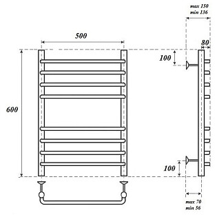Полотенцесушитель водяной 50х80 см хром Point "Аврора П12" PN10158S