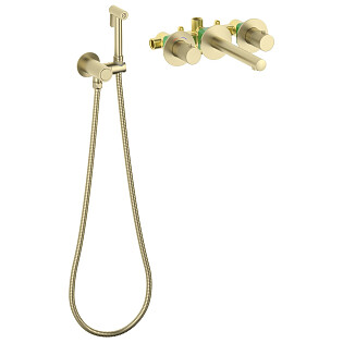 Смеситель для раковины встроенный с гигиеническим душем золото матовое Timo Saona 2383-17SM