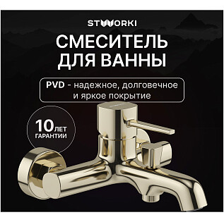 Смеситель для ванны с душем настенный золотой Stworki "Эстерсунд" S31100GG
