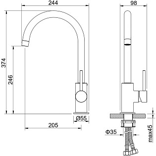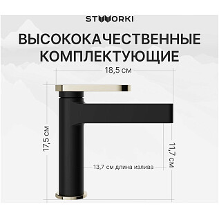 Смеситель для раковины однорычажный черный, золотой Stworki "Малунг" S11010BG