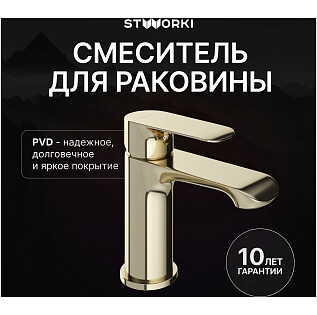 Смеситель для раковины однорычажный золотой Stworki "Копенгаген" S42010GG