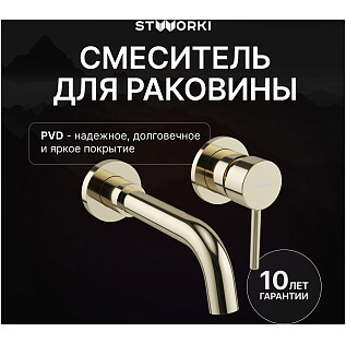 Смеситель для раковины встраиваемый золотой Stworki "Копенгаген" S42040GG