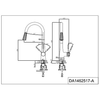 Смеситель для кухни латунный с выдвижной лейкой черный, золото D&K Rhein Schiller DA1462517A