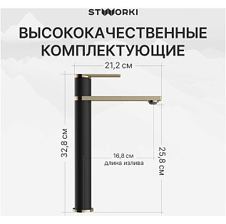 Смеситель для раковины однорычажный черный, золотой Stworki "Олланд" S01020BG