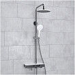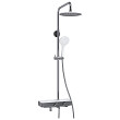 Регулируемая по высоте стойка для душа. Для этого необходимо выдвинуть верхнюю часть стойки и зафиксировать на необходимой высоте при помощи гайки верхнего крепления.