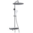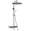 Регулируемая по высоте стойка для душа. Для этого необходимо выдвинуть верхнюю часть стойки и зафиксировать на необходимой высоте при помощи гайки верхнего крепления.