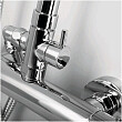 Душевой комплект легко монтируется к стене c помощью двух эксцентриков (подключение смесителя) и одного крепежного элемента (крепление стойки для душа к стене). Для термостатических смесителей подключение горячей воды только слева, холодной воды - только справа.