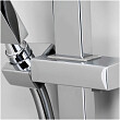 1-функциональная лейка с системой защиты от известковых отложений. Держатель лейки с изменяющимся углом поворота лейки 180 градусов. Держатель можно поднять или опустить на любую удобную высоту, для этого необходимо нажать кнопку и, удерживая, перемещать по стойке.