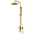 Стойку для душа можно регулировать по высоте. Для этого необходимо выдвинуть верхнюю часть стойки и зафиксировать на необходимой Вам высоте при помощи накидной гайки верхнего крепления.