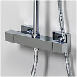 Душевой комплект легко монтируется к стене c помощью двух эксцентриков (подключение смесителя) и одного крепежного элемента (крепление стойки для душа к стене). Для термостатических смесителей подключение горячей воды только слева, холодной воды - только справа.