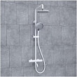 Регулируемая по высоте стойка для душа. Для этого необходимо выдвинуть верхнюю часть стойки и зафиксировать на необходимой высоте при помощи гайки верхнего крепления.