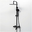 Регулируемая по высоте стойка для душа. Для этого необходимо выдвинуть верхнюю часть стойки и зафиксировать на необходимой высоте при помощи гайки верхнего крепления.