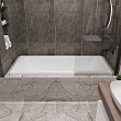 Угловая асимметричная ванна Doris выполнена в современном стиле и имеет удобную и стильную форму со скошенным краем с другой стороны от слива.