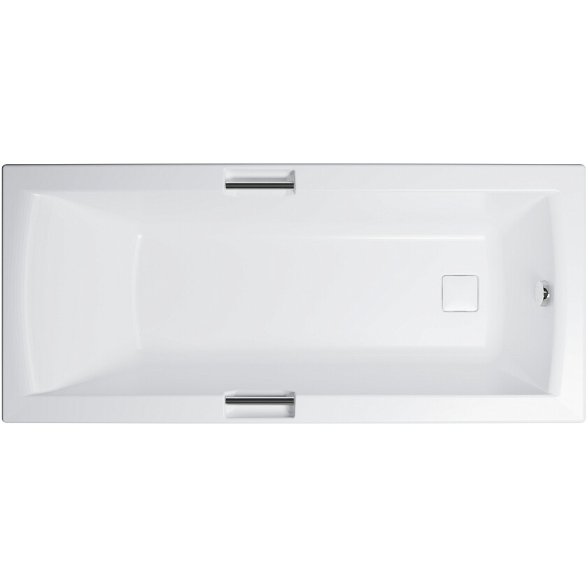 Привычный слив заменен на скрытый (стильная накладка в комплекте) — это позволяет получить гладкое и удобное для купания дно, а также защитить сток от засоров. Интересно смотрятся встроенные ручки, которые не скрадывают внутреннее пространство прямоугольной ванны.