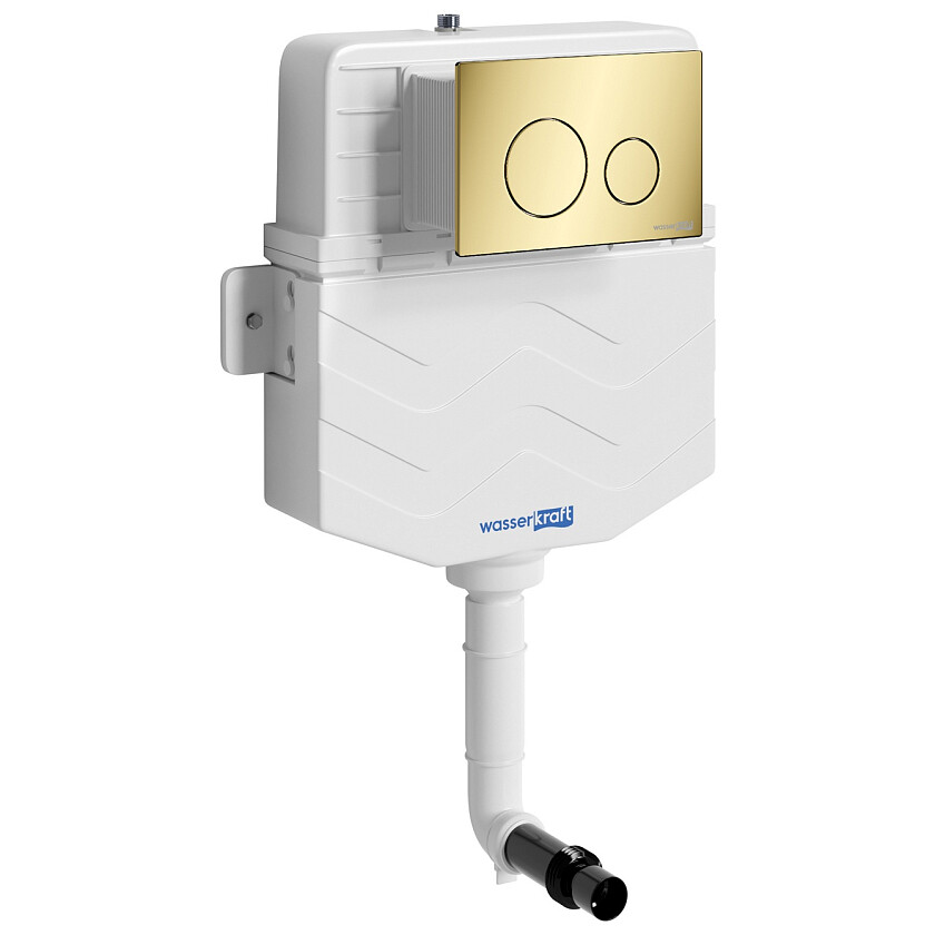 Встраиваемый смывной бачок с кнопкой смыва золотой глянцевой Wasserkraft Aller 10TLT.031.ME.PG02