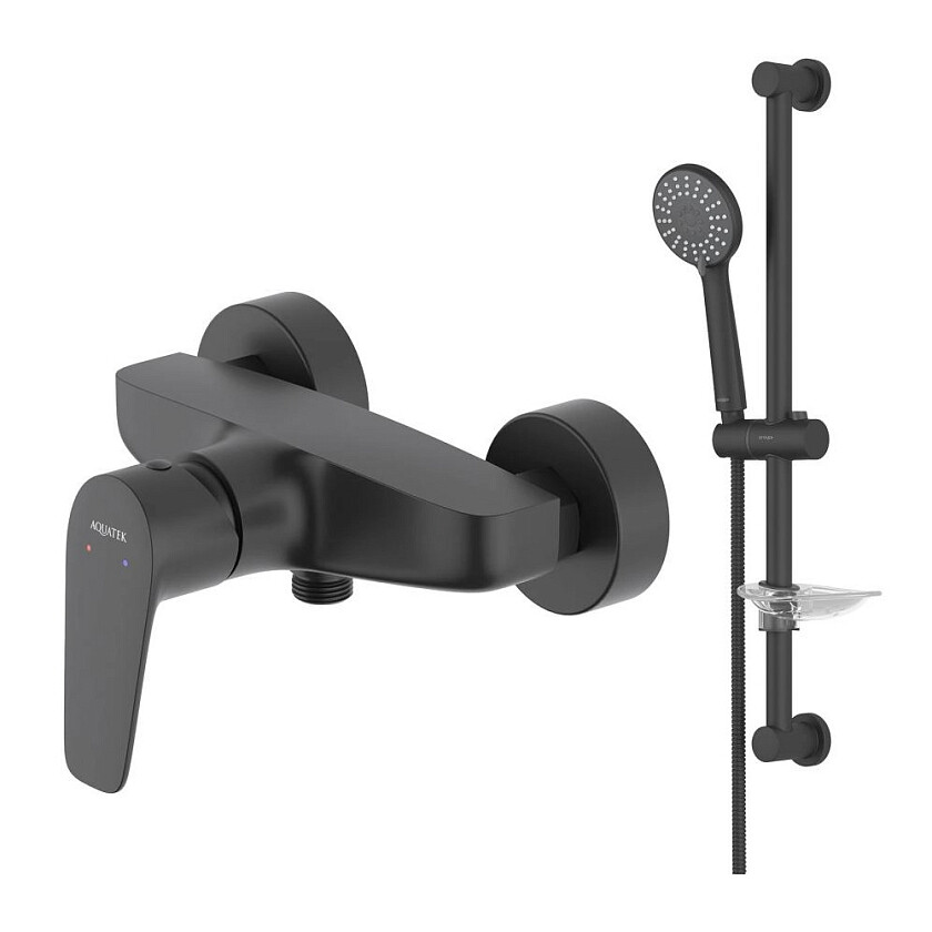 Душевой комплект с лейкой и смесителем для душа черный Aquatek "Бетта" AQ1132MB - изображение 1