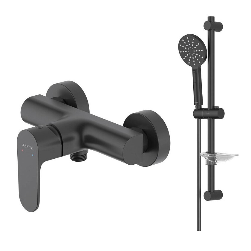 Душевой комплект с лейкой и смесителем черный Aquatek "Оберон" Q1232MB - изображение 1