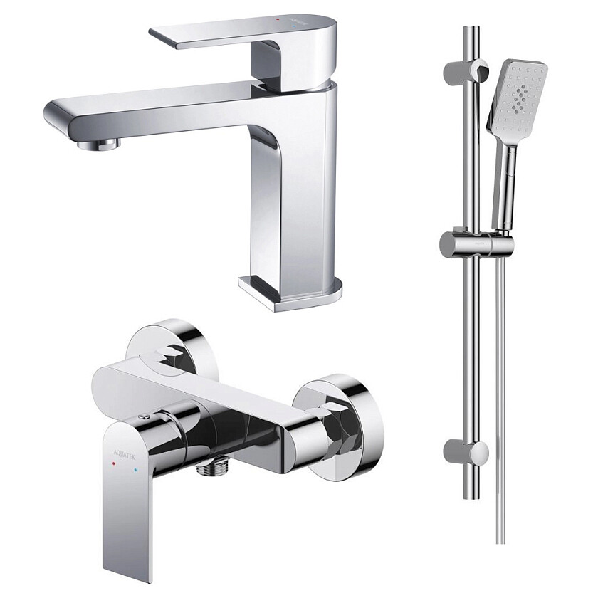Душевой комплект с лейкой, смесителем для раковины и душа.