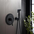 AQ1519MB КЛАССИК набор с гигиеническим душем (смеситель + гигиеническая лейка + шланг + шланговое подсоединение с держателем), матовый черный.