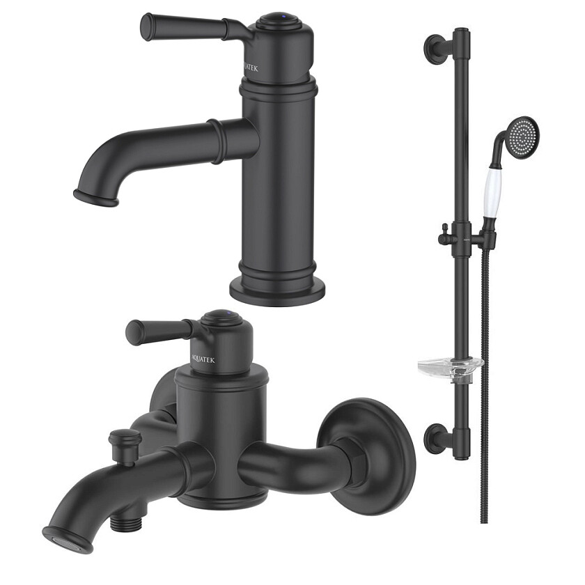 Душевой комплект с лейкой, смесителем для раковины и ванны.
