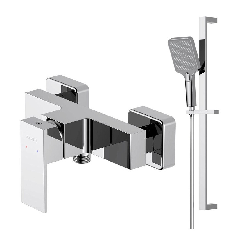 В комплекте: душевая штанга; держатель душевой лейки; душевая лейка; душевой шланг; монтажный комплект