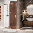 Распашной механизм дает возможность широкого проема для входа внутрь душевого уголка.
