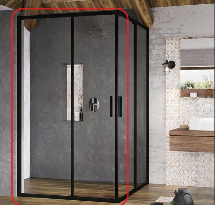 Система раздвижных дверей экономит место в ванной комнате, дверь не пересекает и не наклоняется, и благодаря удобной системе, двери открываются.