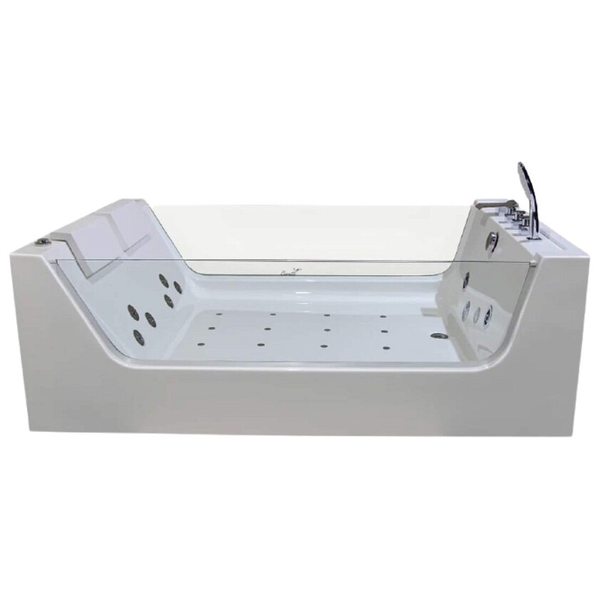 Акриловая гидромассажная ванна (джакузи) Ceruttispa C-454, 6 гидромассажных форсунок, 2 спинные гидромассажные форсунки, 12 аэромассажных форсунок, смеситель, пульт, подголовник, хромотерапия, с датчиком сухого пуска.