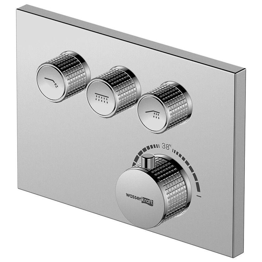 Смеситель на 3 выхода. Подключается к двум аксессуарам для душа на выбор: верхней душевой насадке, лейке для душа и настенному изливу. В зависимости от ваших предпочтений.