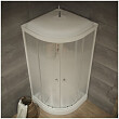 Благодаря угловой конструкции и поддону в форме четверти круга модель можно вписать даже в ванные комнаты небольшой площади.