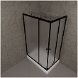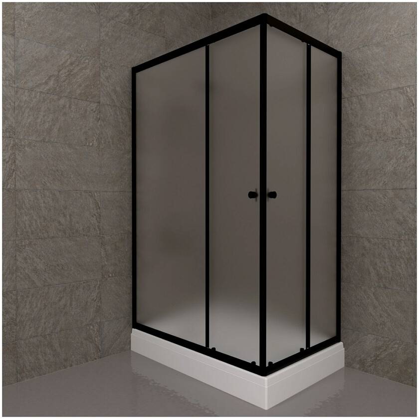 Раздвижные дверцы (безопасное закаленное стекло толщиной 4 мм) крепятся при помощи черного профиля из алюминия.