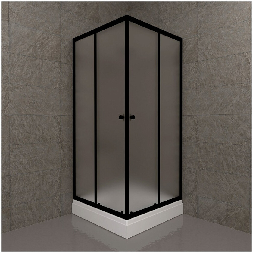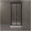 Раздвижные дверцы (безопасное закаленное стекло толщиной 4 мм) крепятся при помощи черного профиля из алюминия.