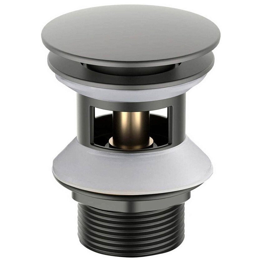 AQ6002BGM сливной набор для раковины Push-open с переливом, крышка круглая, оружейная сталь (шлиф. черный хром)