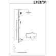 Комплектация: смеситель, эксцентрики-2шт, декоративная шайба (отражатель)-2шт, штанга, крепление для штанги, кронштейн для верхнего душа, шланг душевой, лейка душевая, держатель душевой лейки, паспорт.