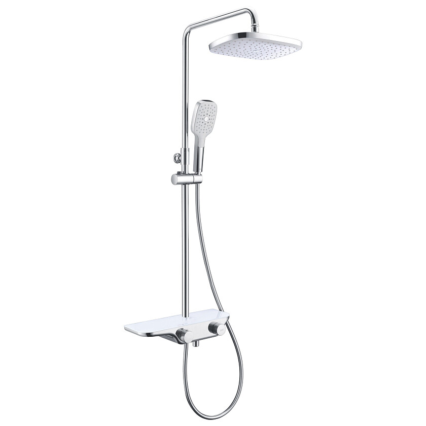 Функциональная душевая система с широкой лейкой, с эффектом настоящего тропического ливня. Штанга регулируется под любой рост.