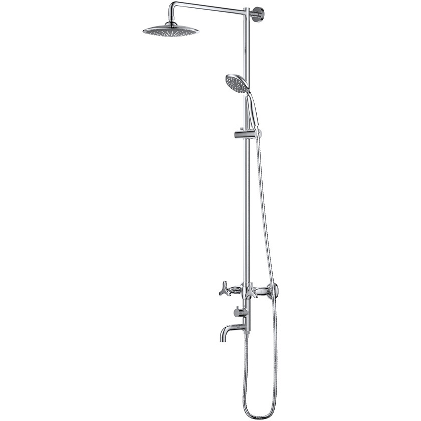 Функциональная душевая система с широкой лейкой, с эффектом настоящего тропического ливня. Штанга регулируется под любой рост. Обновленные ручки.