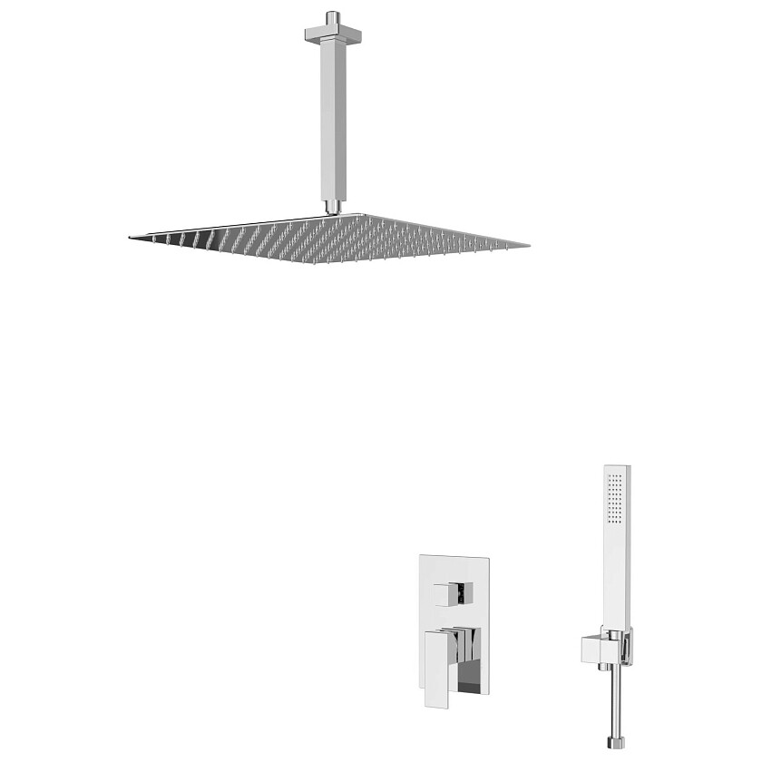 Комплектация: Смеситель, встраиваемая часть: блок, держатель ручного душа, ручная лейка, держатель верхнего душа, тропический верхний душ, душевой шланг, паспорт, брендовая сумка