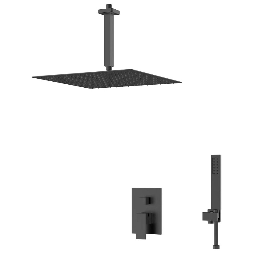 Комплектация: Смеситель, встраиваемая часть: блок, держатель ручного душа, ручная лейка, держатель верхнего душа, тропический верхний душ, душевой шланг, паспорт, брендовая сумка