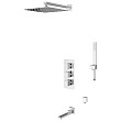 Комплектация: Смеситель, встраиваемая часть: блок, излив, держатель ручного душа, ручная лейка, держатель верхнего душа, тропический верхний душ, душевой шланг, паспорт, брендовая сумка