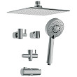 Душевая система состоит из верхнего душа, ручного душа и держателя для лейки.
