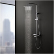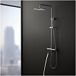 Термостатический картридж поддерживает постоянную комфортную температуру воды и не допустит превышения заданной температуры. Все элементы размещены снаружи, что позволяет устанавливать систему даже в готовом интерьере. Переключение с режима "излив" на режим "ручной душ" осуществляется поворотом излива влево. Сложностей монтажа не возникает при установке душевой системы опытным сантехником. Внимательно изучите инструкцию по монтажу и эксплуатации.